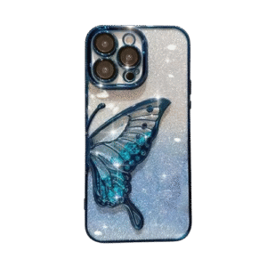 3D Glitter Butterfly iPhone Case – Sparkling Blue Shockproof Stylish Cover (Peacock)