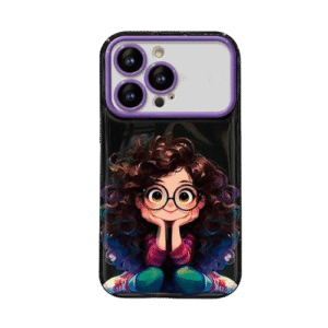 Cute Curly Hair Girl Pink iPhone Case with Mirror & Stand – Shockproof Stylish Cover (Zoya)