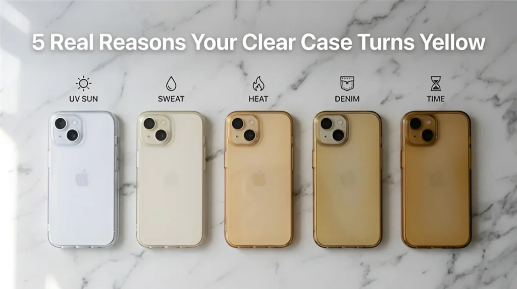 So, why do transparent cases turn yellow? It’s a combination of UV exposure, heat, sweat, low-quality materials, and just plain time. The good news is it’s entirely avoidable if you choose the right case from the start.